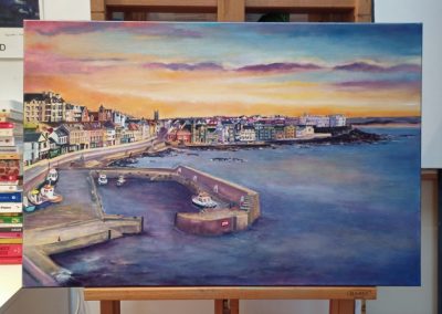 I regularly take on commissioned paintings. The process is straightforward, we take your idea and budget and using sketches and photographs develop this into a stunning artwork. The painting can be personalised to include partners, family members and pets to make it extra special.